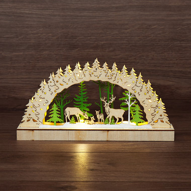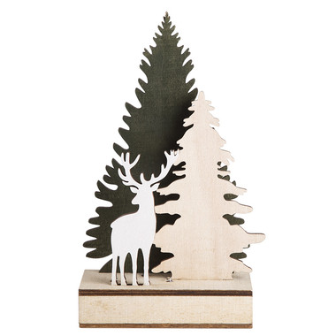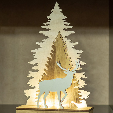 Деревянная фигурка с подсветкой Олень в лесу 9x8x10 см