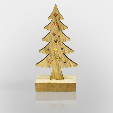 Деревянная фигурка с подсветкой Ель со снежинками 9,5x6x31 см