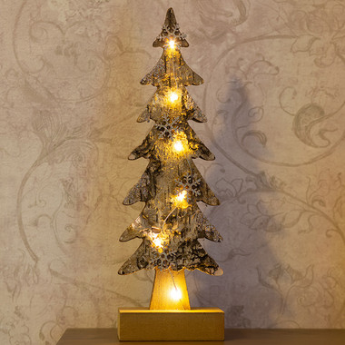 Деревянная фигурка с подсветкой Елка на подставке 14,5х5х30 см