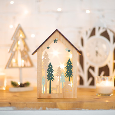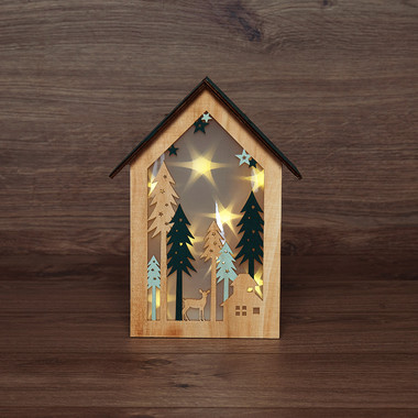 Деревянная фигурка с подсветкой Домик в лесу 9x8x10 см
