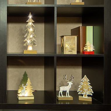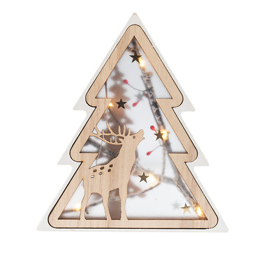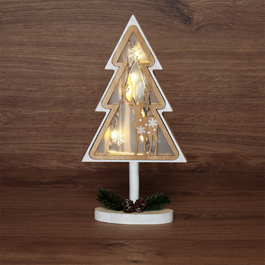 Деревянная фигурка с подсветкой Елочка с оленем 12x6x21,5 см