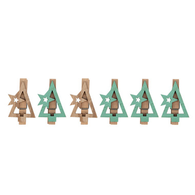 Деревянные прищепки Новогодняя ель 14,5×4,5×1,6 cм, 6 шт, NEON-NIGHT