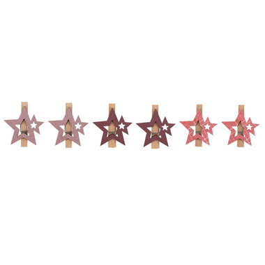 Деревянные прищепки Звездочки 16×4,5×1,3 cм, розовые, 6 шт, NEON-NIGHT