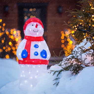 Акриловая светодиодная фигура Снеговик в синих варежках 31х25х59 см, IP65, понижающий трансформатор в комплекте NEON-NIGHT