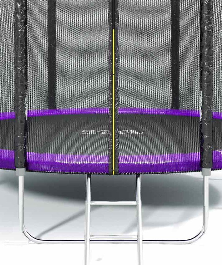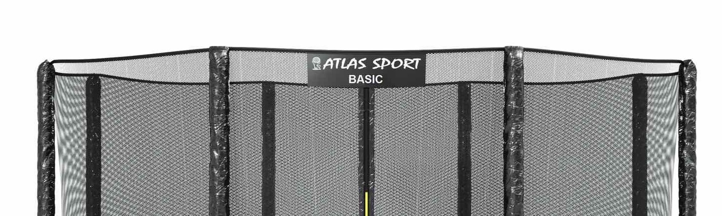 - Высокая защитная сетка – также важное условие для безопасности батута. Сеть Atlas Sport выполнена из высококачественного нейлона, в меру эластична и обладает амортизирующими свойствами. Ширина каждой ячейки подобрана таким образом, чтобы даже самые маленькие пальчики не могли застрять в ней. Вход/выход через сетку выполнен на молнии с 4-мя фиксирующими защелками на внешней стороне сетки для защиты от случайного открытия.