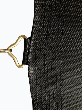 - Пружины присоединяются к полотну при помощи треугольных карабинов на петле, каждая из которых прострочена 8-ю плотными фабричными швами, что полностью защищает от разрывов в местах крепления пружин.