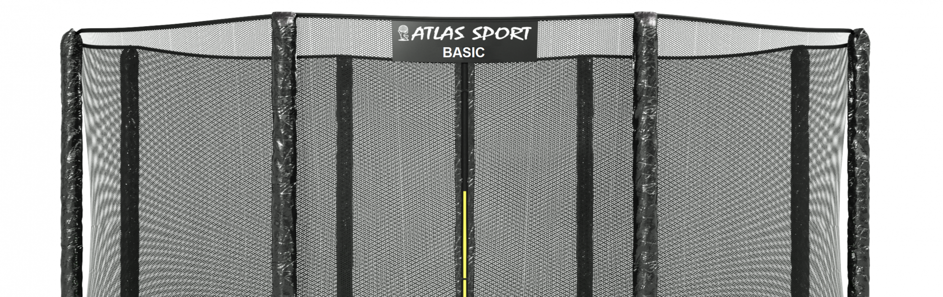 - Высокая защитная сетка – также важное условие для безопасности батута. Сеть Atlas Sport выполнена из высококачественного нейлона, в меру эластична и обладает амортизирующими свойствами. Ширина каждой ячейки подобрана таким образом, чтобы даже самые маленькие пальчики не могли застрять в ней. Вход/выход через сетку выполнен на молнии с 4-мя фиксирующими защелками на внешней стороне сетки для защиты от случайного открытия.
