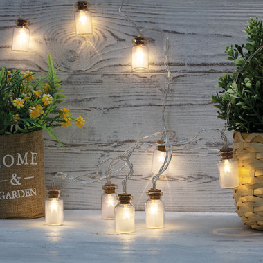 Гирлянда светодиодная Баночки 1,5 м, 10 LED, прозрачный ПВХ, цвет свечения теплый белый, 2 х АА (батарейки не в комплекте) NEON-NIGHT