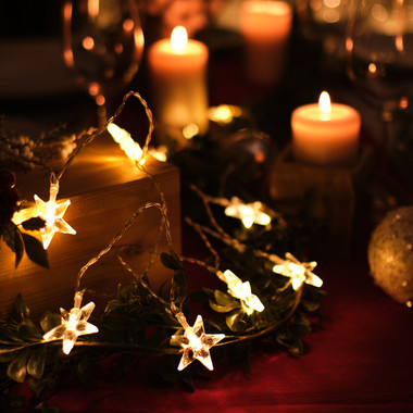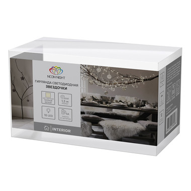 Гирлянда светодиодная Звездочки 1,5 м, 10 LED, прозрачный ПВХ, цвет свечения теплый белый, 2 х АА (батарейки не в комплекте) NEON-NIGHT