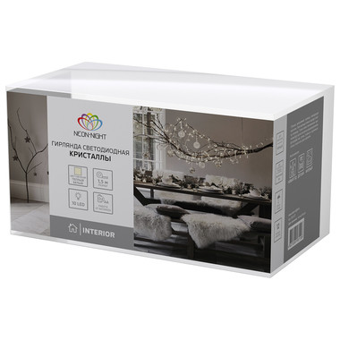 Гирлянда светодиодная Кристаллы черные 10 LED, 1,5 м, прозрачный ПВХ, теплый белый свет свечения, 2 х АА (батарейки не в комплекте) NEON-NIGHT