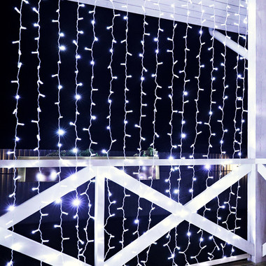 Гирлянда Светодиодный Дождь 2х3м, 448 LED БЕЛЫЙ, прозрачный ПВХ, IP65, постоянное свечение, 230В соединяется NEON-NIGHT (нужен шнур питания 303-500-1)