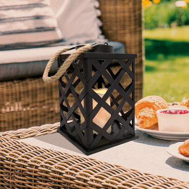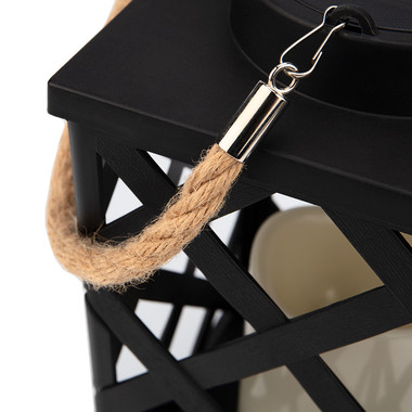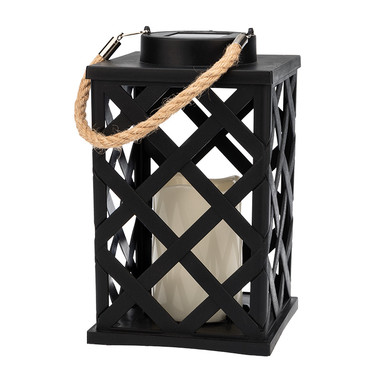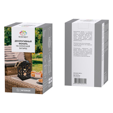 Декоративный фонарь на солнечной батарее 14х14х24 см, черный плетеный корпус, теплый белый цвет свечения NEON-NIGHT