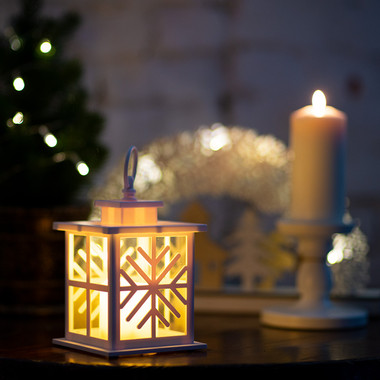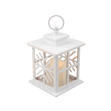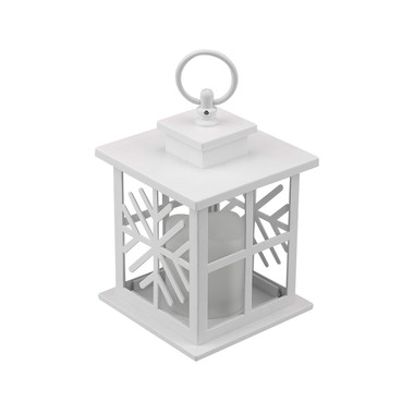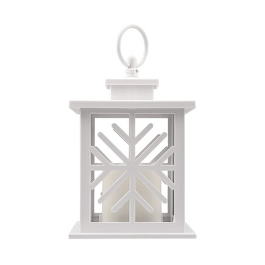 Декоративный фонарь со свечкой, белый корпус со снежинкой, размер 12х12х18 см, цвет теплый белый