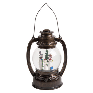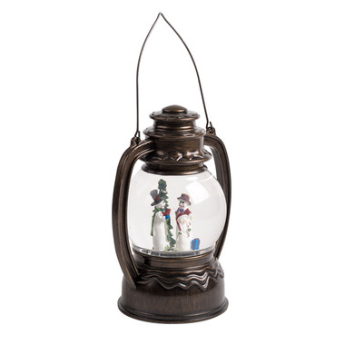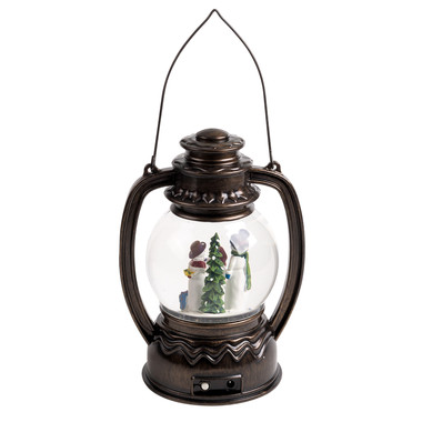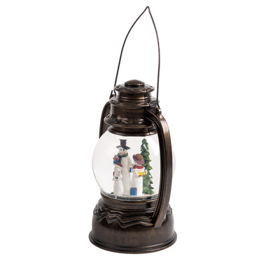 Декоративный фонарь с эффектом снегопада и подсветкой Снеговики, Белый