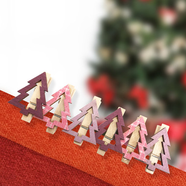 Деревянные прищепки Елочки 14,5×4,5×1,6 cм, 6 шт, розовые NEON-NIGHT