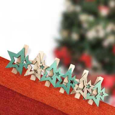 Деревянные прищепки Звездочки 16×4,5×1,3 cм, бирюзовые 6 шт, NEON-NIGHT