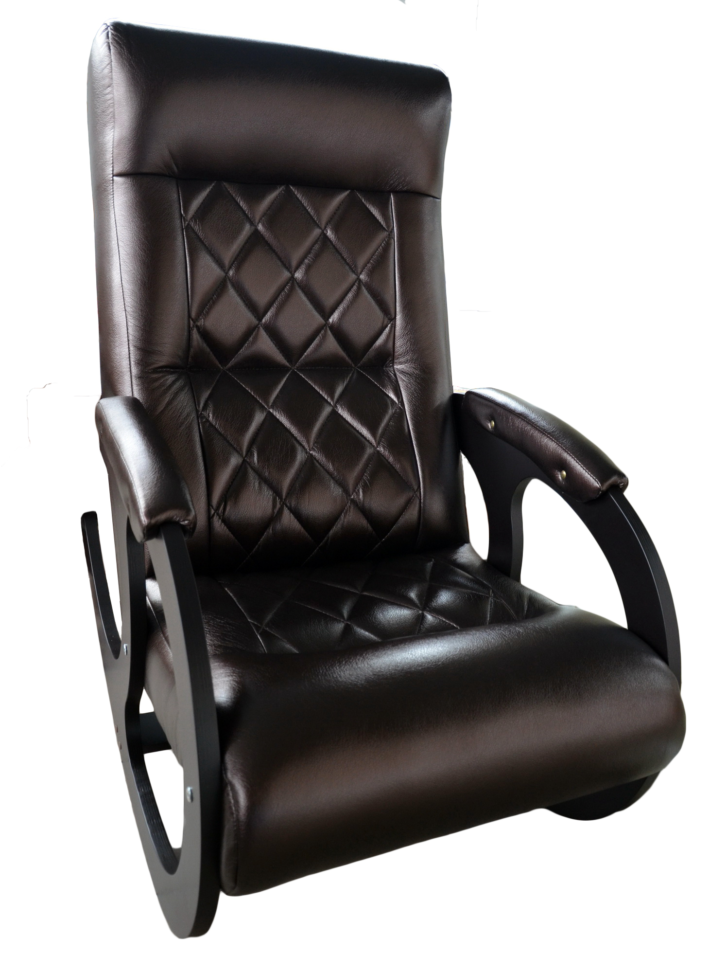 КАЧЕСТВЕННАЯ ЭКОКОЖА. Кресло-качалка с подголовником изготовлено из мягкой, приятной на ощупь и износоустойчивой искусственной кожи.