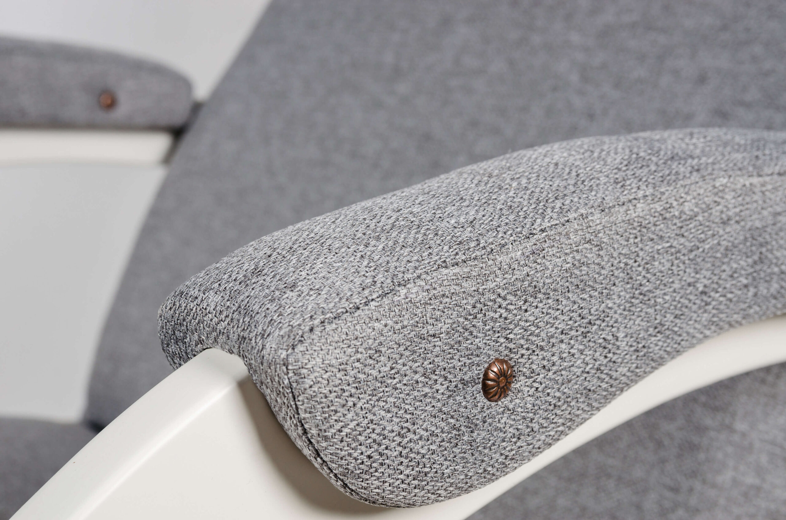 КАЧЕСТВЕННЫЕ ОТДЕЛОЧНЫЕ МАТЕРИАЛЫ. Кресло-качалка с подголовником изготовлено из мягкой, приятной на ощупь и износоустойчивой ткани европейских производств.
