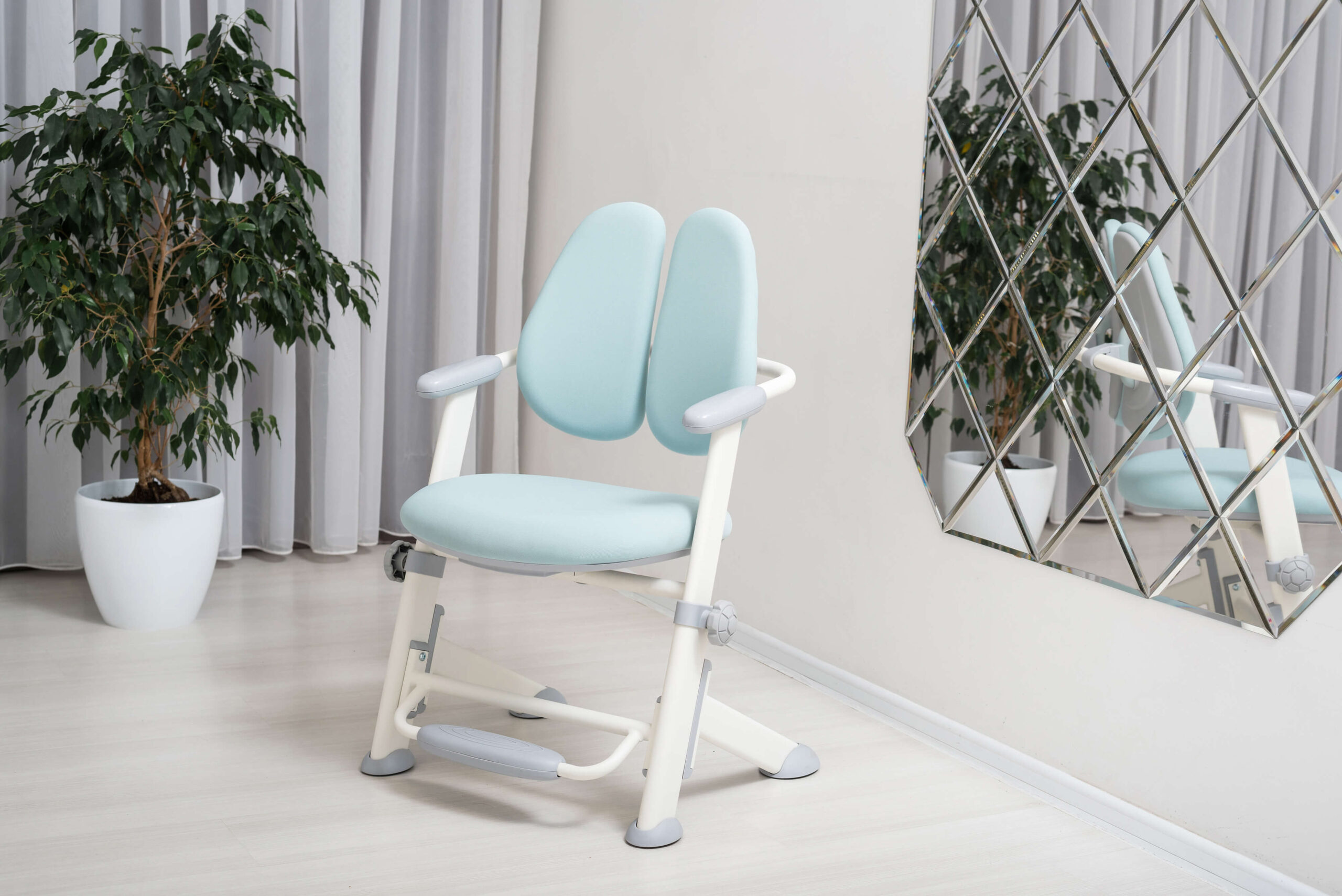 Главная особенность данного кресла — двойная спинка ортопедической формы, которая плотно прилегает к спине, поддерживая правильную осанку, а также создает максимальный комфорт во время использования.