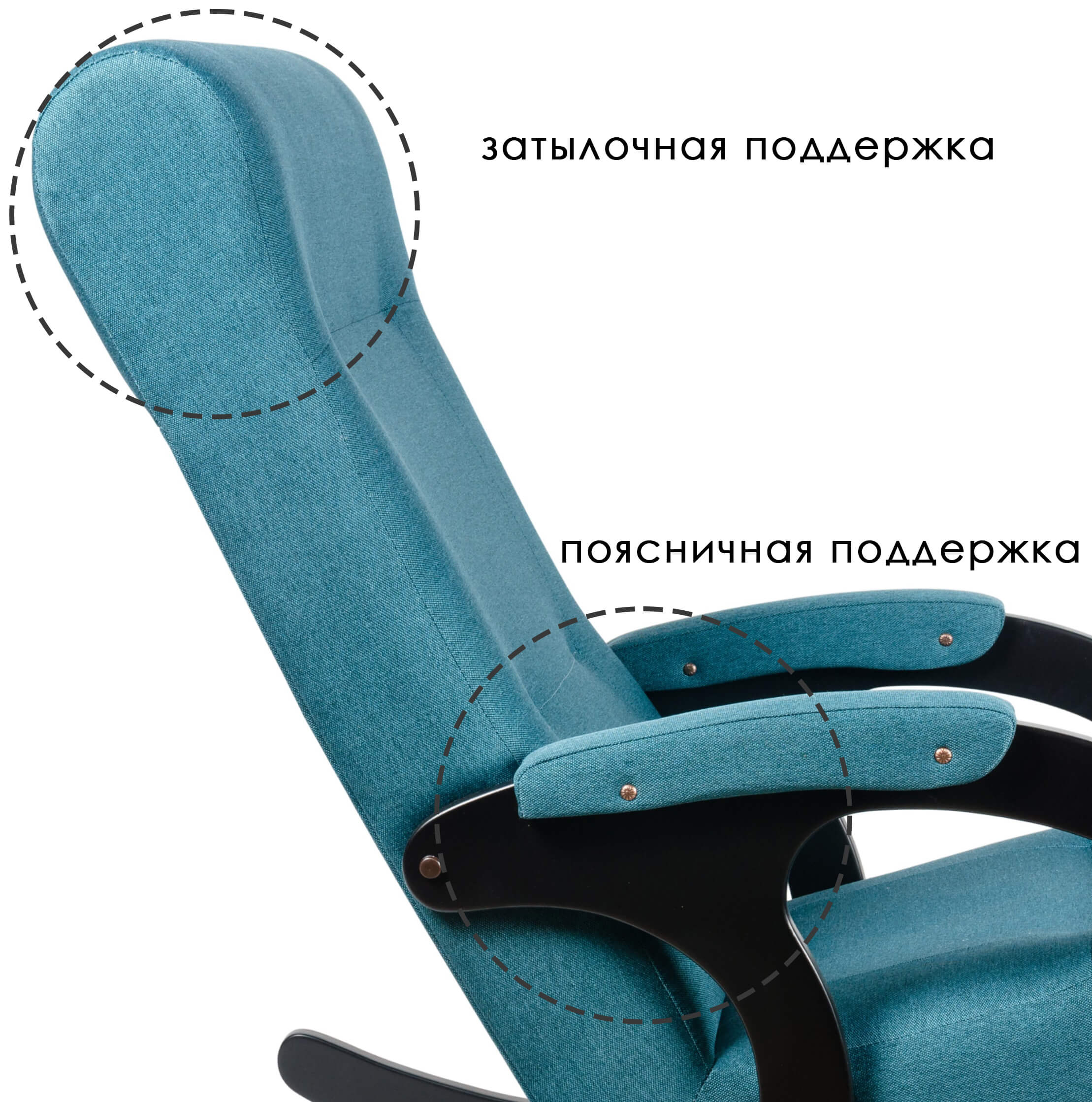 КАЧЕСТВЕННАЯ ТКАНЬ. Кресло-качалка с подголовником изготовлено из мягкой, приятной на ощупь и износоустойчивой ткани европейских производств.