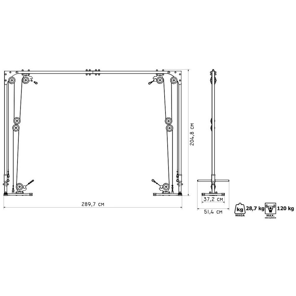Кроссовер предназначен для работы со свободными весами, которые размещаются на стержень диаметром 25mm.
