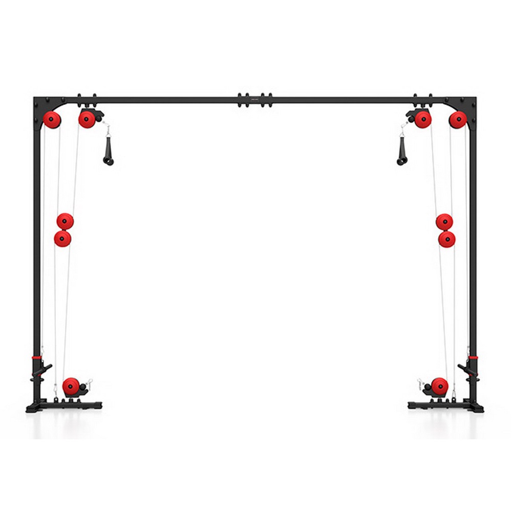 Ворота имеют четыре поворотных ролика, которые обеспечивают свободу движения под разным углом. Это решение позволяет выполнять тренировки мышц груди с выпадом вперед ― так же, как в тренажерах доступных в каждом профессиональном тренажерном зале.