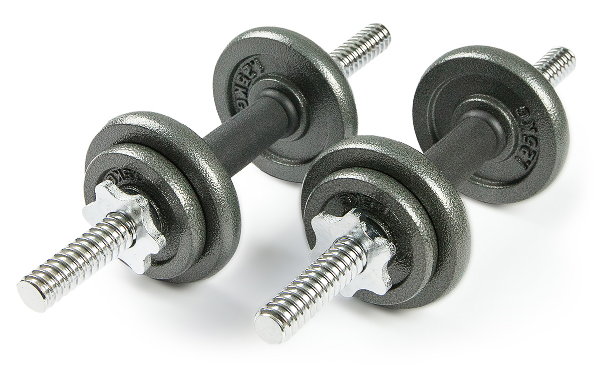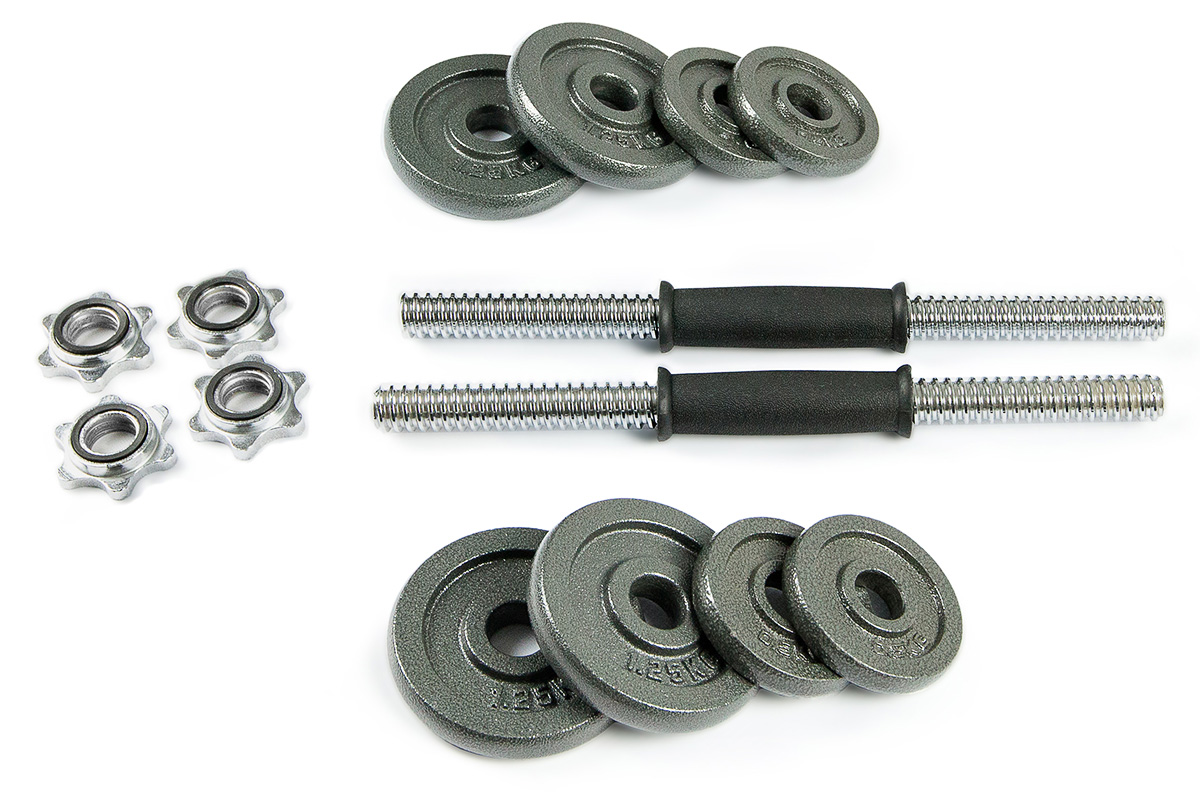 Набор металлических гантель 2х5 кг включает: