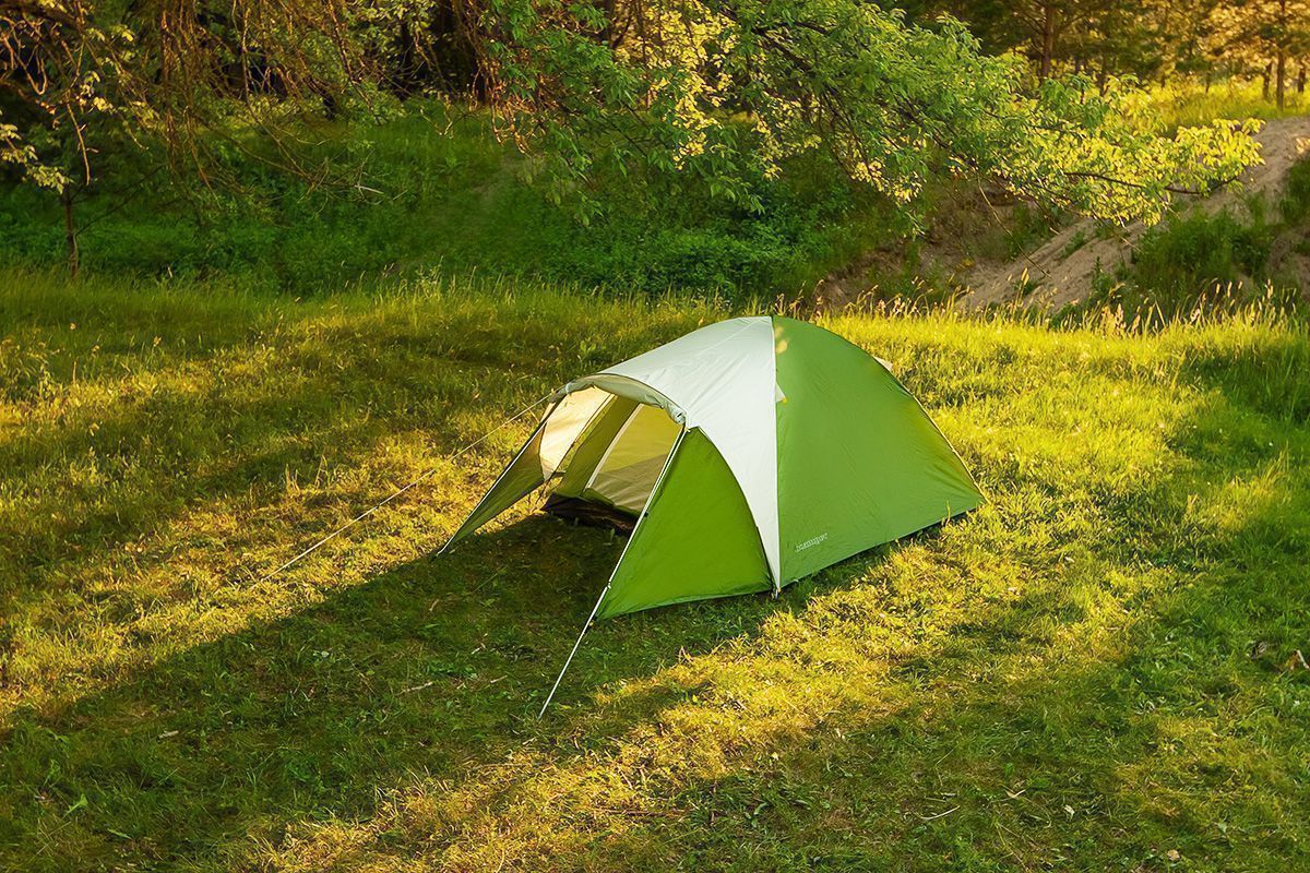 Внутреннее пространство палатки имеет площадь 180х205 см, что позволяет расположиться на ночлег трём туристам, или двоим туристам с большим количеством вещей. Впрочем, вещи можно смело оставлять в просторном тамбуре шириной 95 см. Его образует перед входом тент, который закрепляется поверх палатки. Такая двухслойная конструкция позволяет максимально защититься от дождя, но при этом организовать нормальную вентиляцию, чтобы внутри не было душно. Даже если открыть одновременно вход и вентиляционное окошко, благодаря наружному тенту в палатку не попадёт дождь и не будет сквозняка. К тому же ткань внутренней части сама по себе дышащая, на ней не образуется конденсат.