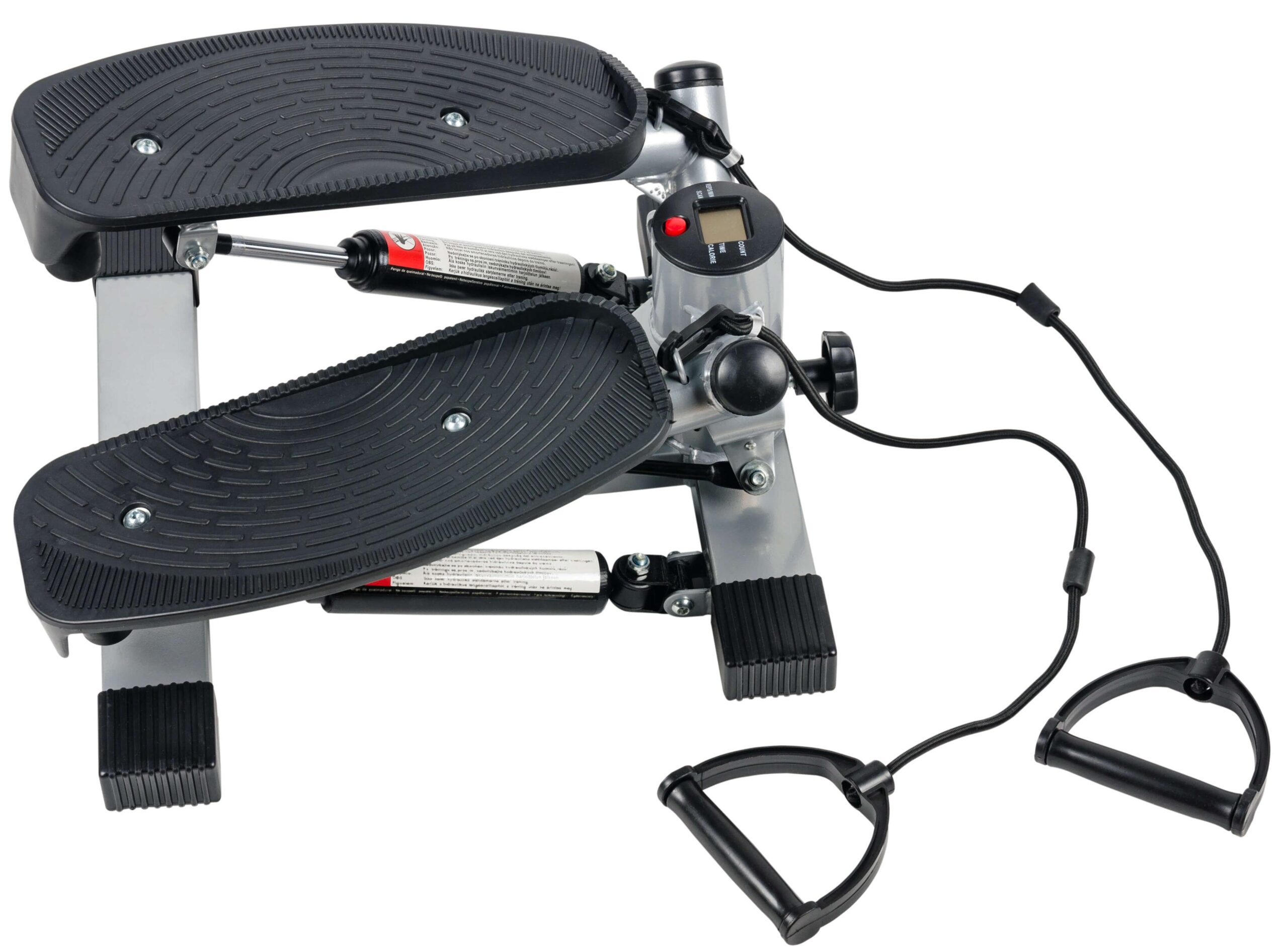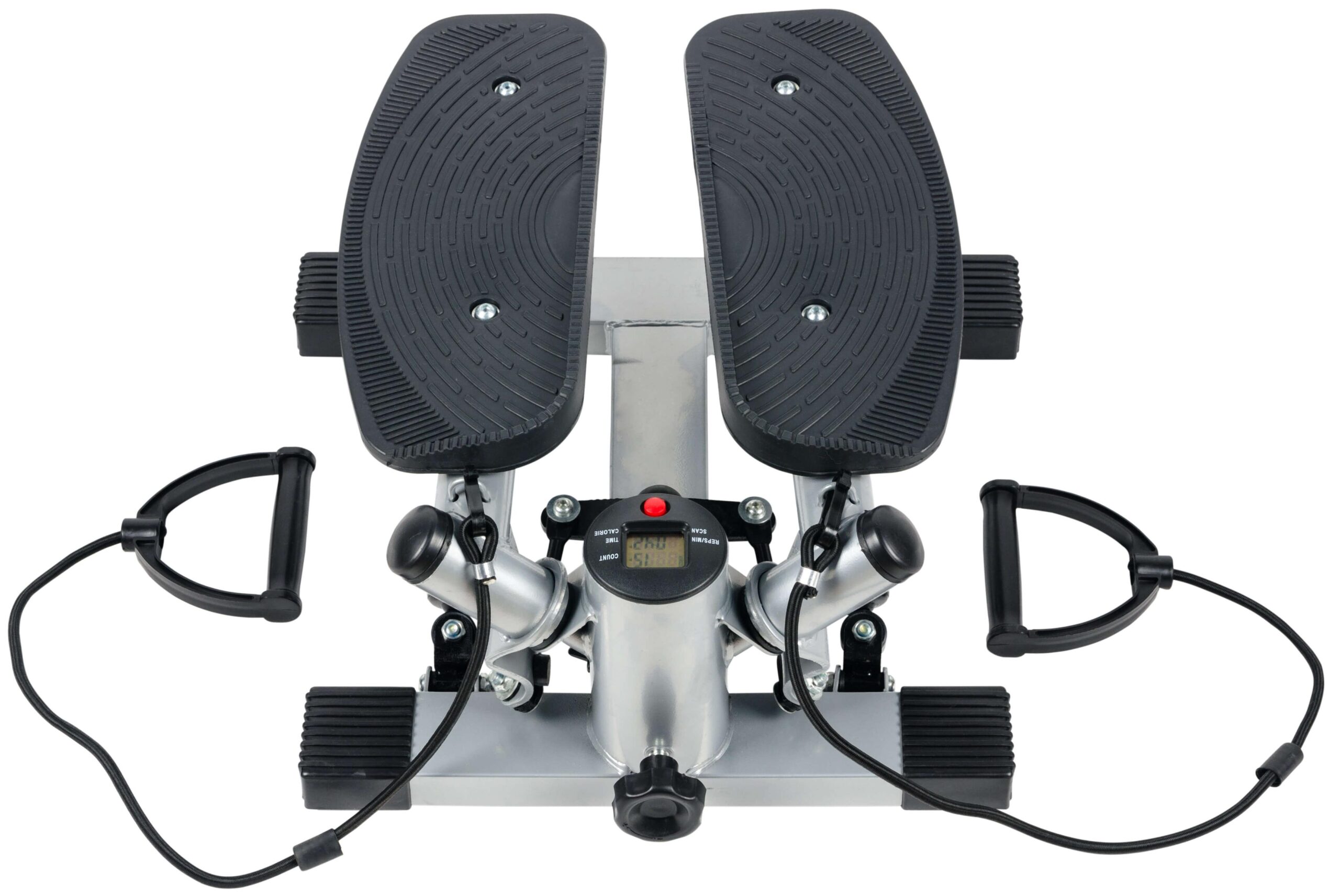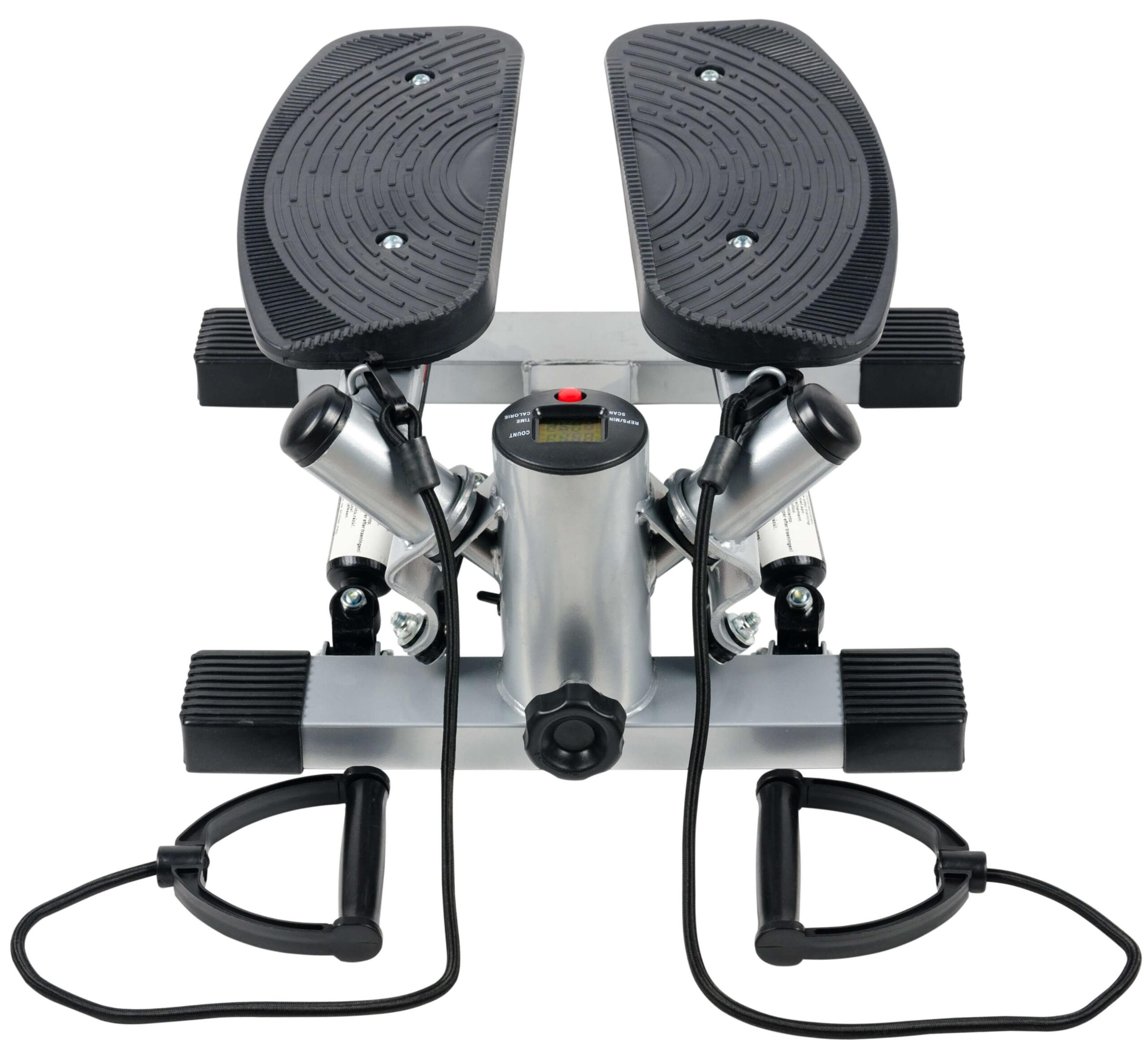 Степпер позволяет движения в 2-х плоскостях — сверху вниз и боковые движения. В отличии от беговой дорожки, степпер оказывает более щадящее воздействие на суставы. Крепкие резиновые упругие эспандеры подключают к тренировке верхнюю часть тела и дают дополнительную устойчивость. При тренировках рекомендуется заниматься на открытом месте, имея до стены или мебели 0,5 метра свободного пространства.