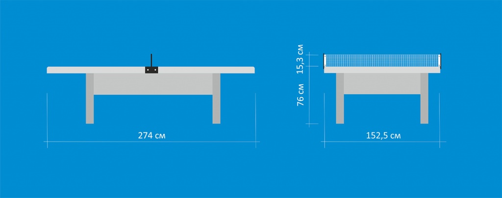 Размер в игровом положении длина 274 см, ширина 152,5 см, высота 76 см.