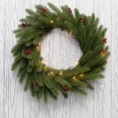 Еловый венок с ягодами и гирляндой NEON-NIGHT Ø 45 см, 20 LED, 2 х АА, литой, теплое белое свечение