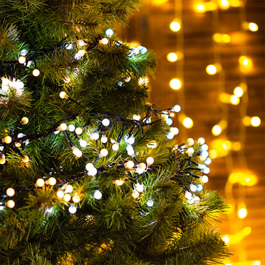 Гирлянда Мишура LED 3 м, темно-зеленый ПВХ, 288 диодов, цвет белый + теплый белый