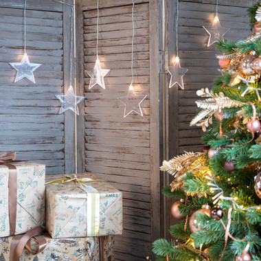 Гирлянда светодиодная Звезды 1,5х0,6 м, прозрачный провод, теплый белый свет свечения NEON-NIGHT