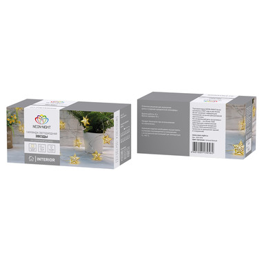 Гирлянда светодиодная Звездочки 1,5 м, 10 LED, прозрачный ПВХ, цвет свечения теплый белый, 2 х АА (батарейки не в комплекте) NEON-NIGHT