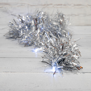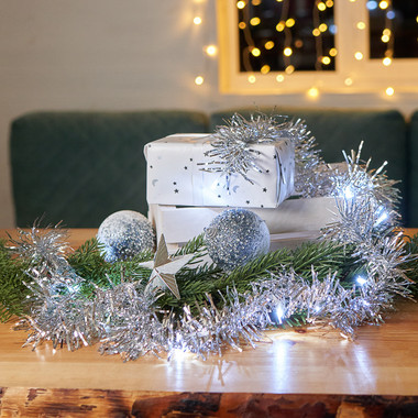 Гирлянда светодиодная Мишура серебряная 10 LED 1,5 м, прозрачный ПВХ, белый свет свечения, 2 х АА (батарейки не в комплекте) NEON-NIGHT