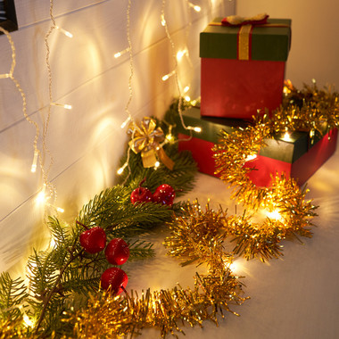 Гирлянда светодиодная Мишура золотая 10 LED, 1,5 м, прозрачный ПВХ, теплое белое свечение, 2 х АА (батарейки не в комплекте) NEON-NIGHT