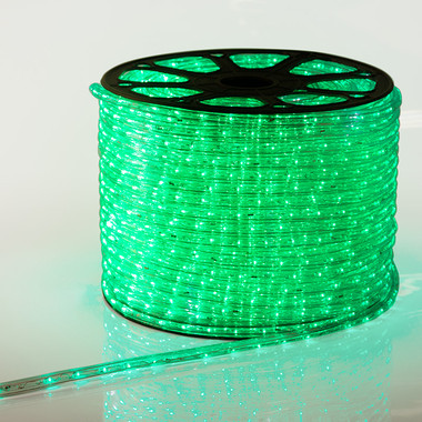 Дюралайт LED, свечение с динамикой (3W) — зеленый, 36 LED/м, бухта 100м — Диаметр 13мм, Модуль резки-4м(до 2023г) и 1м(с 2023г), Шнур питания в комплекте, Морозостойкие добавки, Залитый модуль резки, Контроллер в компекте, диоды лучшего качества.