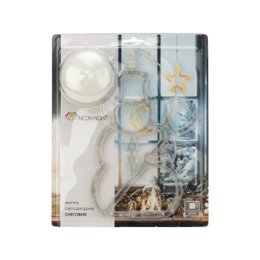 Фигура светодиодная Снеговик на присоске с подвесом, цвет белый