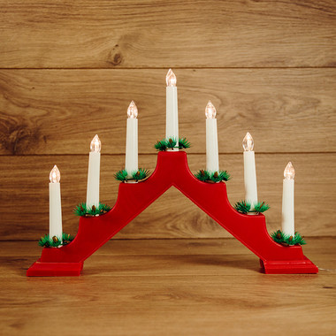 Новогодняя горка 7 свечек, цвет корпуса: Красный, цвет свечения: ТЕПЛЫЙ БЕЛЫЙ