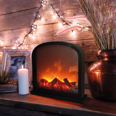 Светодиодный камин Винтаж мини с эффектом живого огня 24.8х12.7х30 см, батарейки 3хС (не в комплекте), с USB, черный