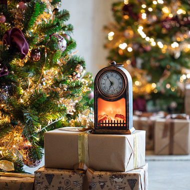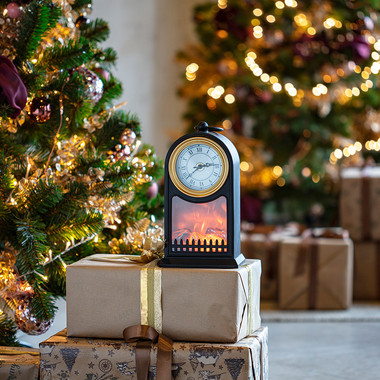 Светодиодный камин Старинные часы с эффектом живого огня 14,7×11,7×25 см, черный, батарейки 2хС (не в комплекте) USB NEON-NIGHT