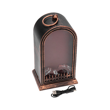 Светодиодный камин Винтаж мини с эффектом живого огня 24.8х12.7х30 см, батарейки 3хС (не в комплекте), с USB, бронзовый