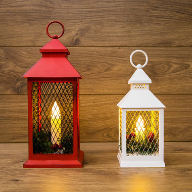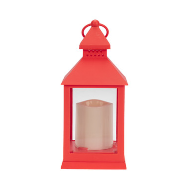 Декоративный фонарь со свечкой, красный корпус, размер 13,5х13,5х30,5 см, цвет ТЕПЛЫЙ БЕЛЫЙ
