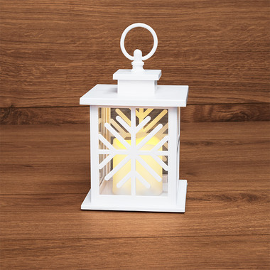 Декоративный фонарь со свечкой, белый корпус со снежинкой, размер 12х12х18 см, цвет теплый белый