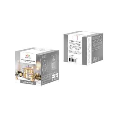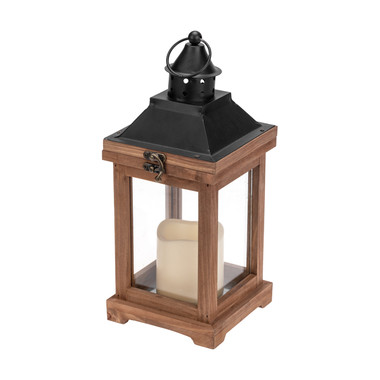 Декоративный фонарь со свечкой, корпус из дерева, размер 14х14х35cм, цвет теплый белый