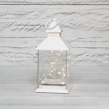 Декоративный фонарь с лампочкой, белый корпус, размер 10,5х10,5х24 см, цвет ТЕПЛЫЙ БЕЛЫЙ