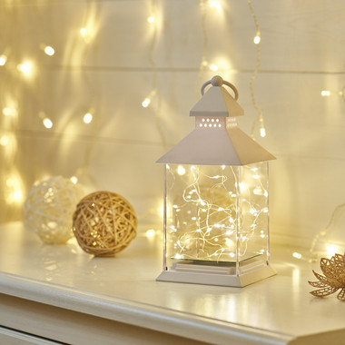 Декоративный фонарь с шариками 12х12х20,6 см, белый корпус, теплый белый цвет свечения NEON-NIGHT