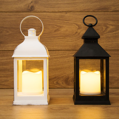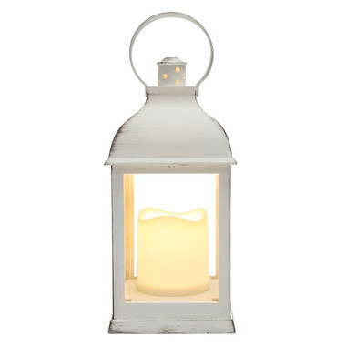 Декоративный фонарь со свечкой, белый корпус, размер 10,5х10,5х22,35 см, цвет ТЕПЛЫЙ БЕЛЫЙ