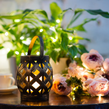Декоративный фонарь со свечкой, плетеный корпус, бронза, размер 14х14х16,5 см, цвет теплый белый