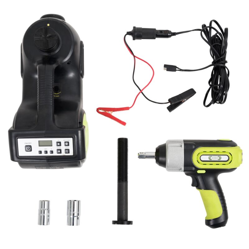 Набор 4 в 1: Электрический автомобильный домкрат с гайковёртом и насосом в чемодане «AutoHelp»